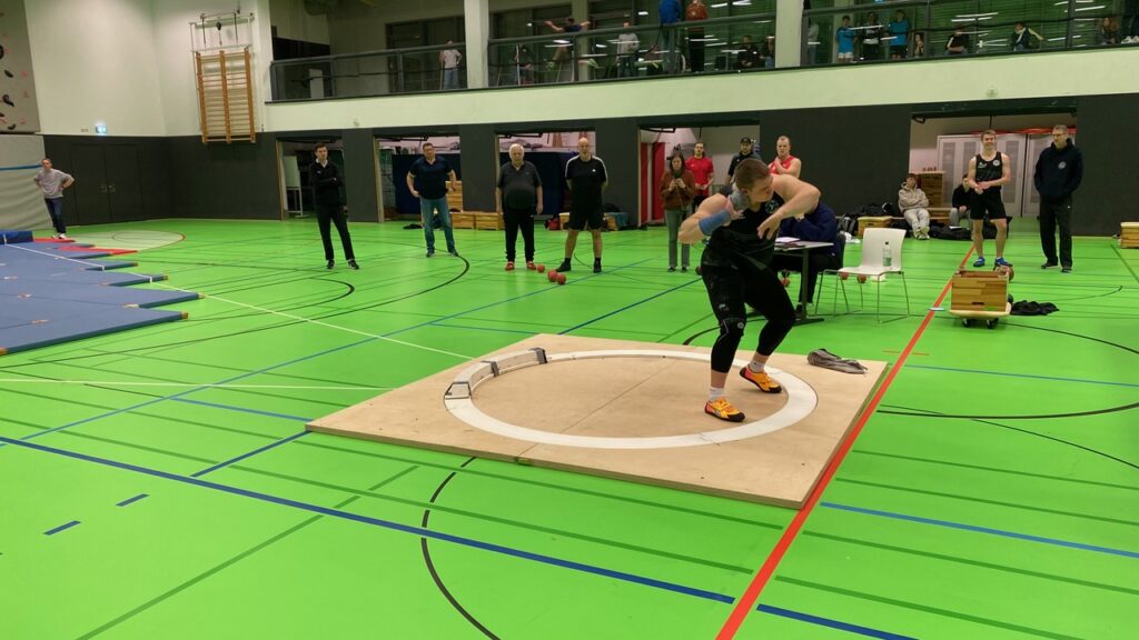 Das Highlight in der Detmolder dbb-Halle unter der Regie von Klaus Brand war der Kugelstoß von Timo Northoff (LG Bünde-Löhne), der die Männerkugel auf national beachtliche 17,36m wuchtete. Aber auch der Nachwuchs meldete sich mit der Kugel zu Wort: Ben Krome in M15 13,29m, Greta Spieß in W15 11,05m , Emila Krüger (alle LG Lippe-Süd) 8,26m oder Hermann Mehlig und Linus Reinhard (beide LG Lage-Dt-Bad Salzuflen) in M80 mit 9,16m und in M14 mit 8,90m.