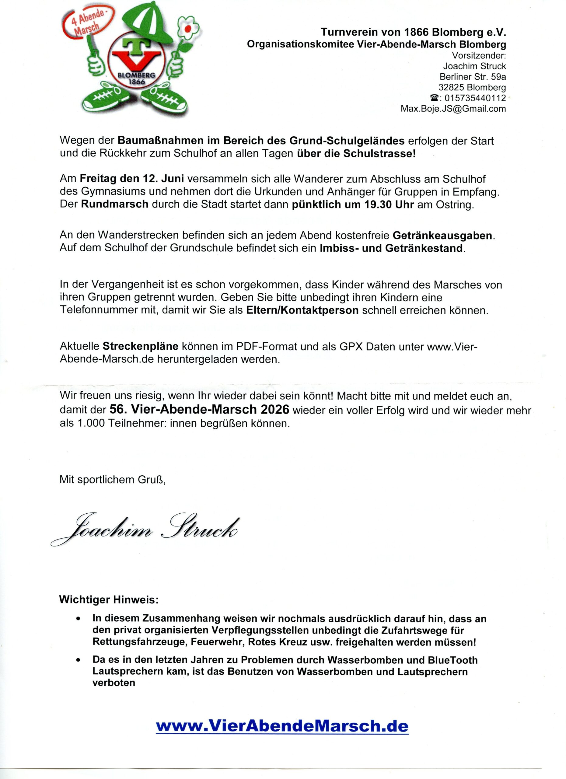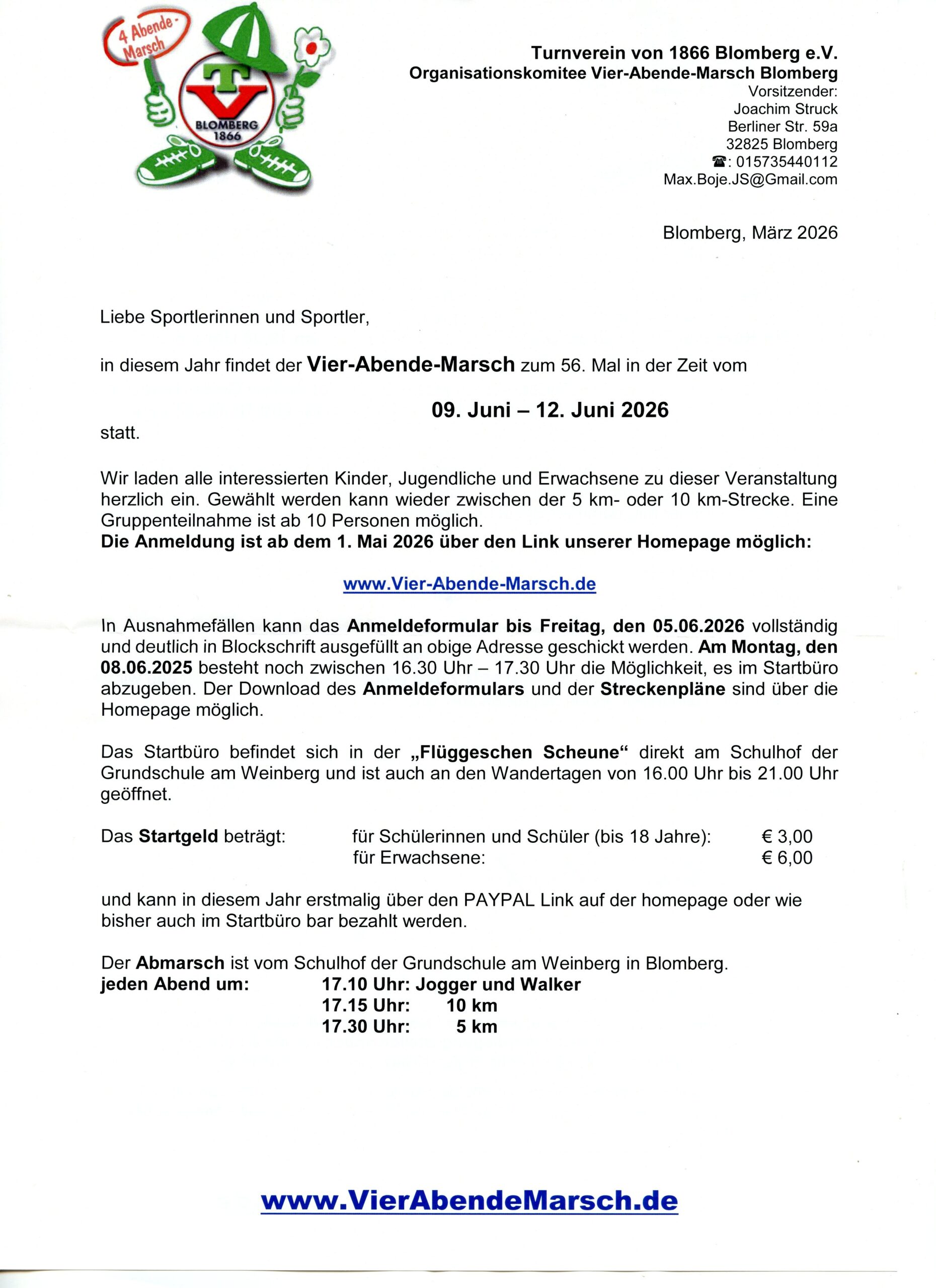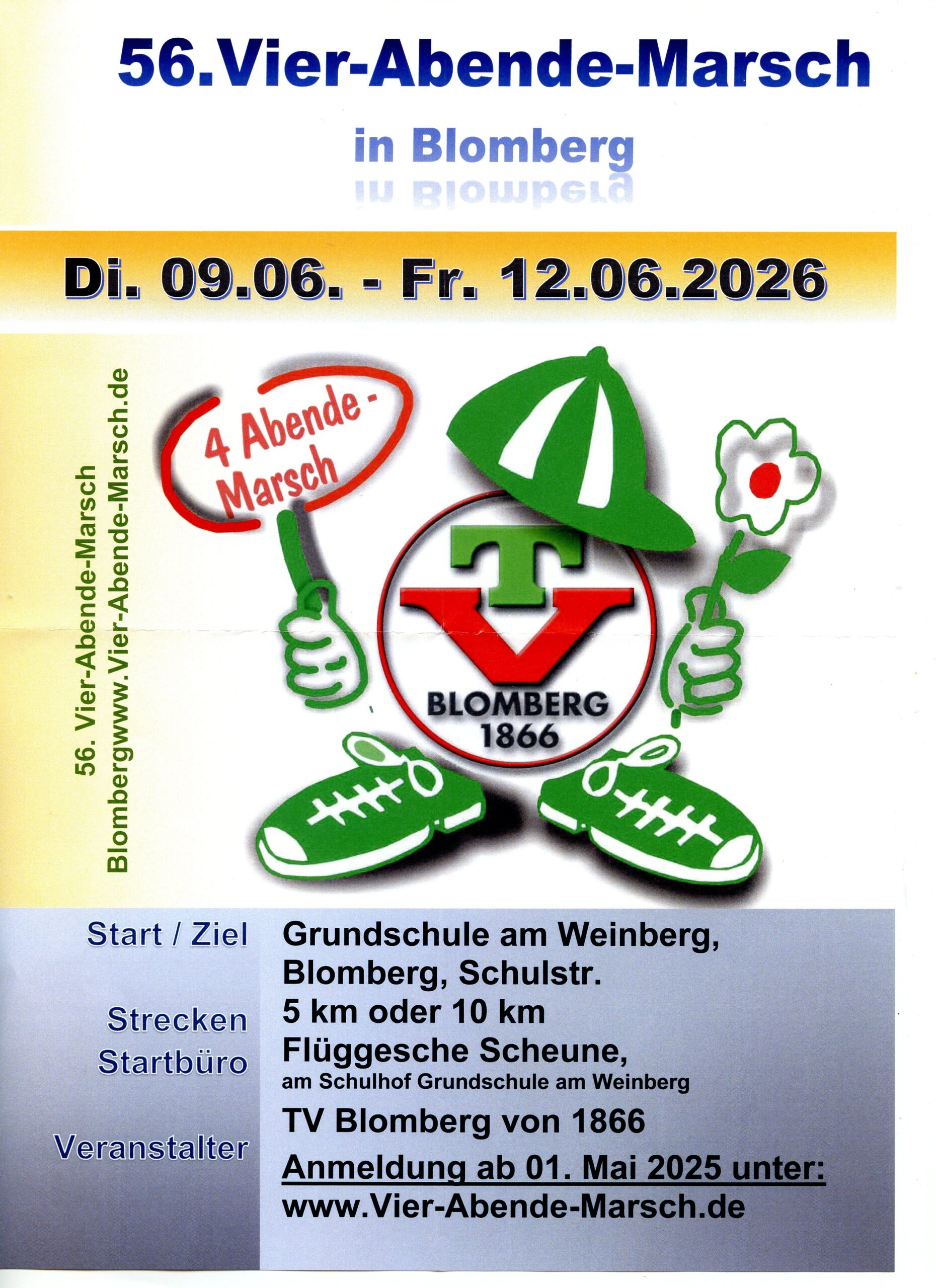 Die Online-Anmeldung ist ab 01.05.2026 über die Veranstaltungsseite möglich - vierabendemarsch.de